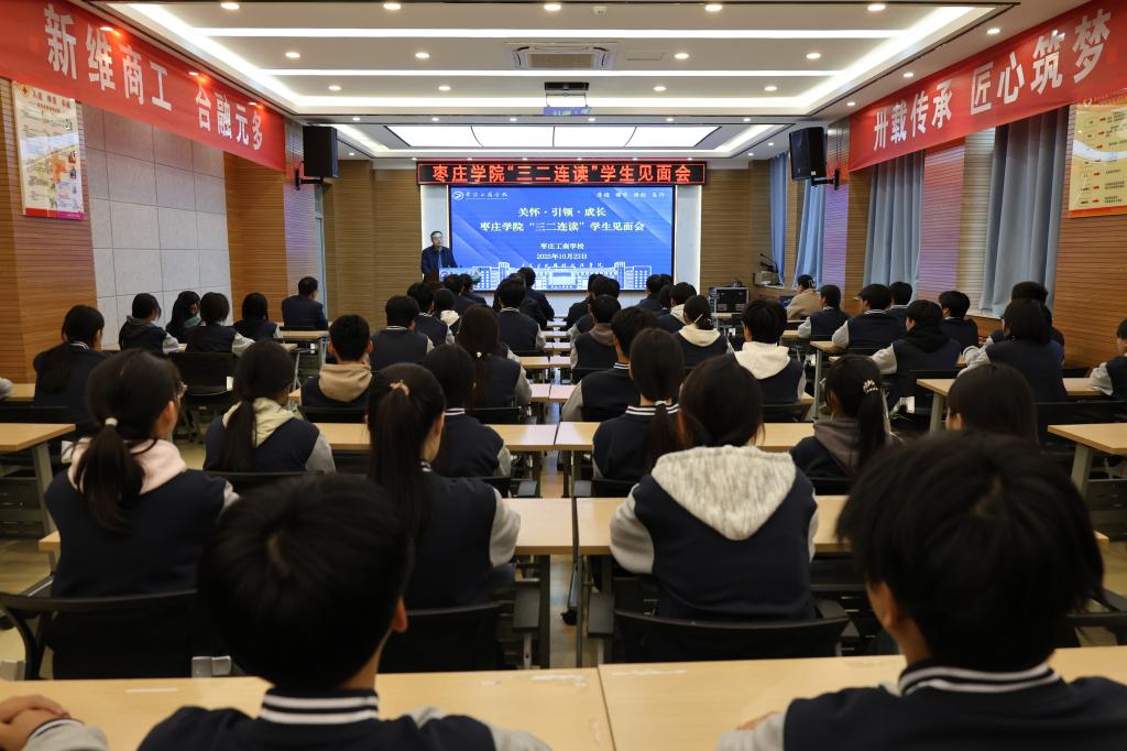 高峰一行还实地考察了核芯光电科技(山东)有限公司、枣庄工商学校并进行座谈交流。在核芯光电科技(山东)有限公司,高峰一行参观了公司展厅,并希望双方在学科建设、人才培养与引进、科技成果转化等方面加强合作,为区域产业升级与创新发展注入持续动力。在枣庄工商学校,高峰一行看望了双方联合培养的“三二连读”学生,并勉励同学们要树立远大理想,勤学奋进,不断提升自我。座谈会上,枣庄工商学校负责人汇报了“三二连读”有关情况,双方重点围绕“三二连读”的专业建设、人才培养方案、学生管理、教师队伍培育及等议题进行深入交流。
