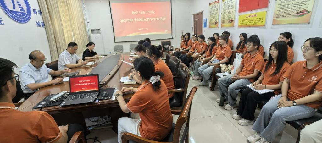 9月9日下午,数学与统计学院在豁然楼A510会议室为2025年下半年援疆支教学生举行欢送会。学院党政领导、本次援疆支教20名队员及上半年支教学生代表参加了欢送会。