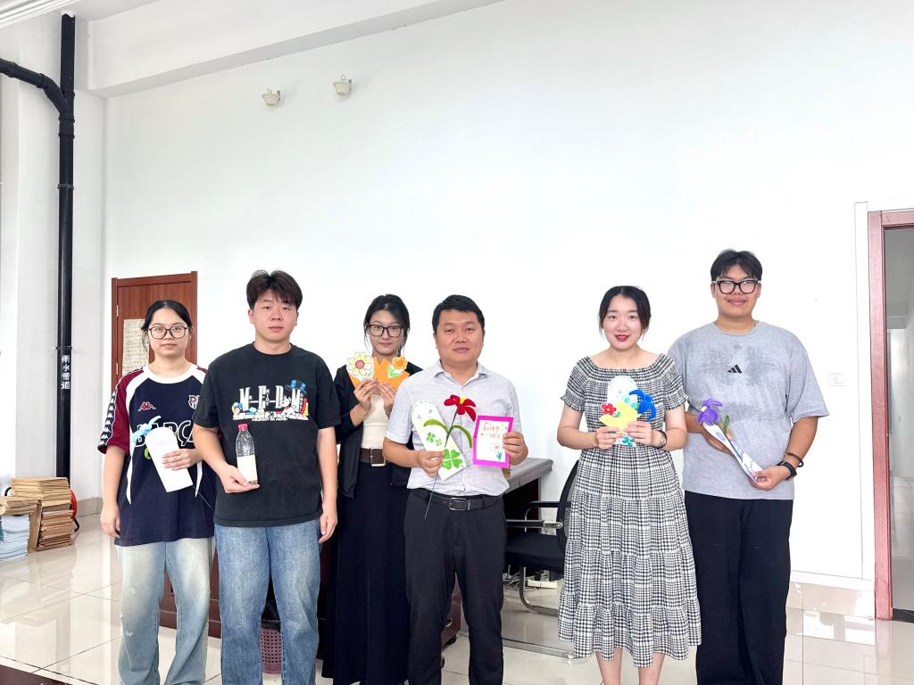 本次活动以“四个一”为主线,在教师节为老师们送上一枝花、一个书签、一张贺卡、一瓶水。同学们将这一份份满载心意的手工礼物送到教师手中,每一件礼品都融合了美院学子的巧思与专业素养:扭扭花象征永不凋谢的师恩,书签上绘有“立德树人,润物无声”等寄语,贺卡则由学生自主设计绘制并手写祝福语,一瓶清泉则寓意恩师润泽心田。温馨感人的教师节,老师们笑容洋溢,倍感欣慰。
